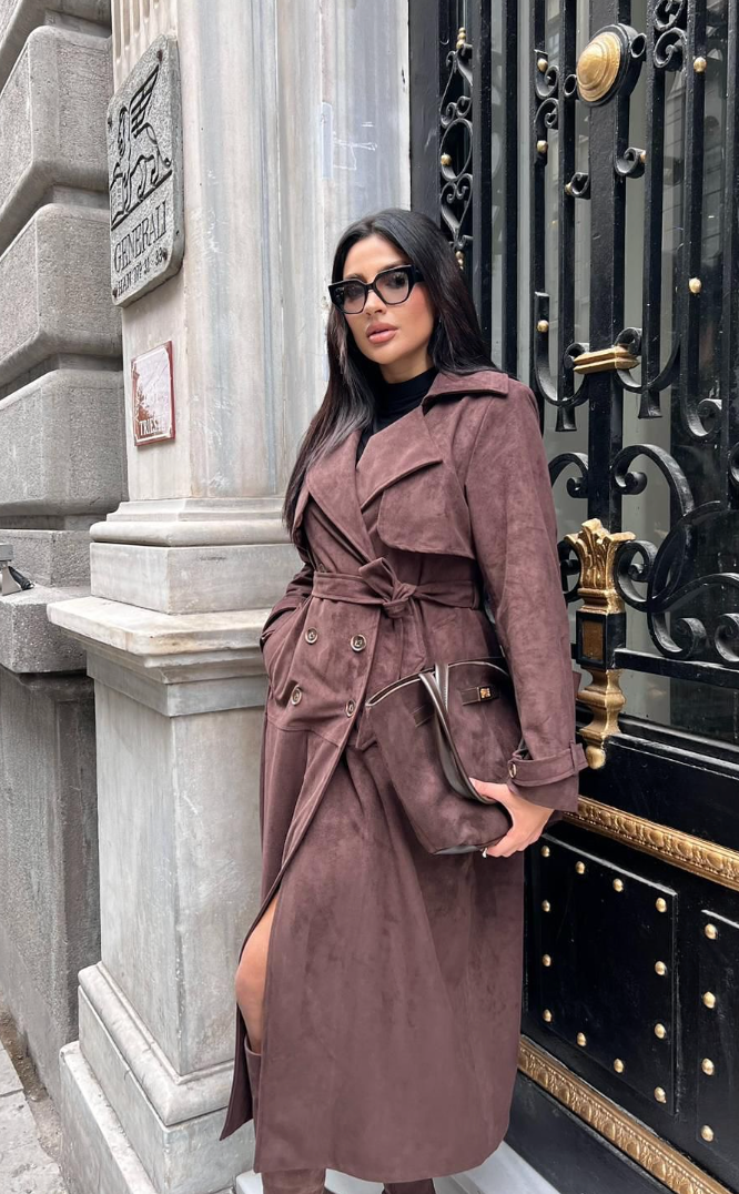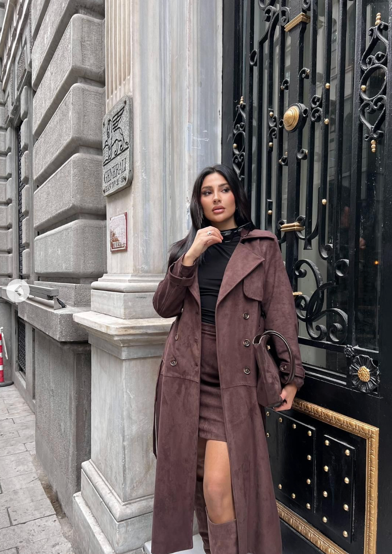 Our Chocolate Brown Suede Trench Coat is your go-to outerwear piece for fall, winter, and early spring. Super cute and effortless, you’ll want to throw it on with everything. Pair it with your favorite jeans, a simple top, and sneakers or boots, and you’re ready for a coffee date or a night out.